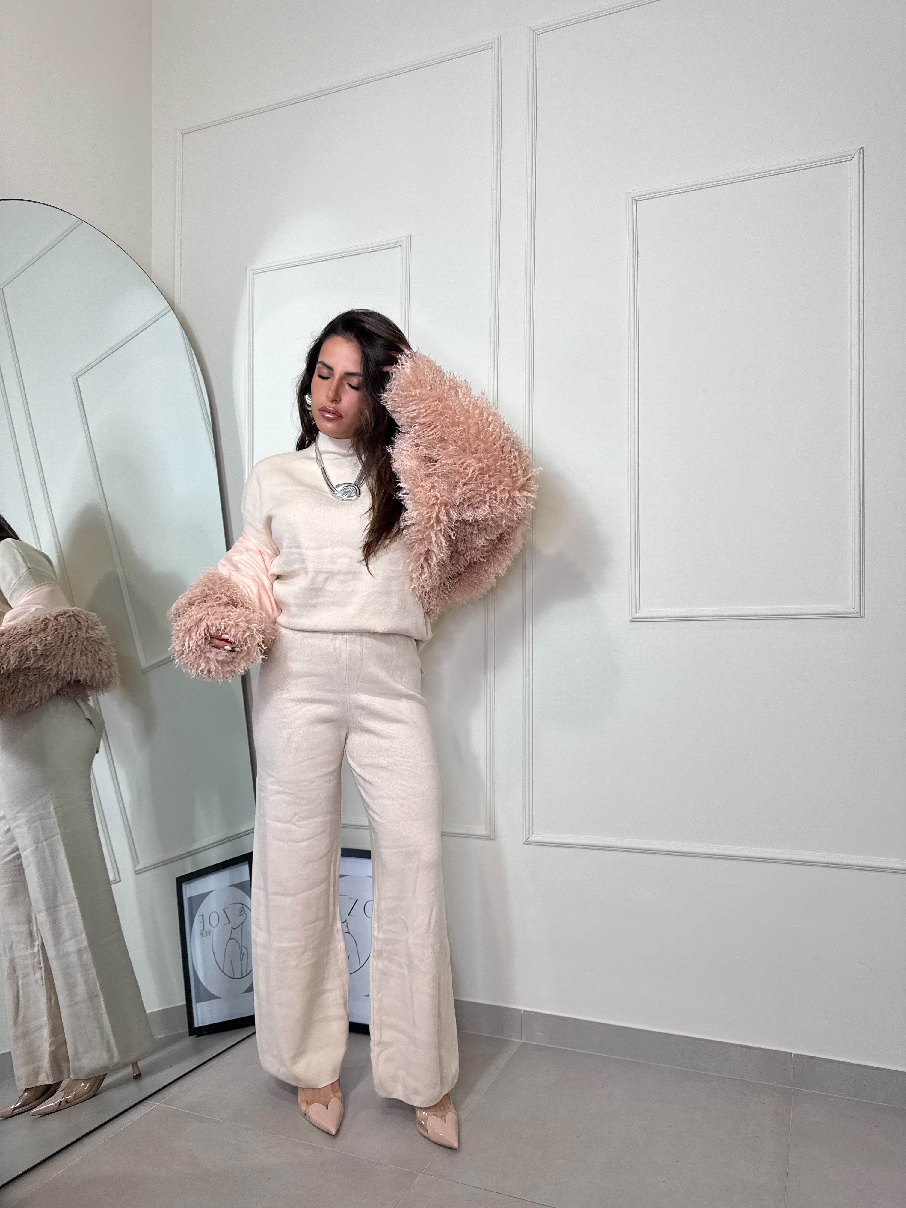 Coordinato in 50% viscosa, caldo morbido e super versatile . Pantalone gamba dritta con elastico in vita e maglione mezzo collo . Perfetto per look eleganti , sportivi , casual . Il tuo jolly nell'armadio . Taglia unica veste da XS a L