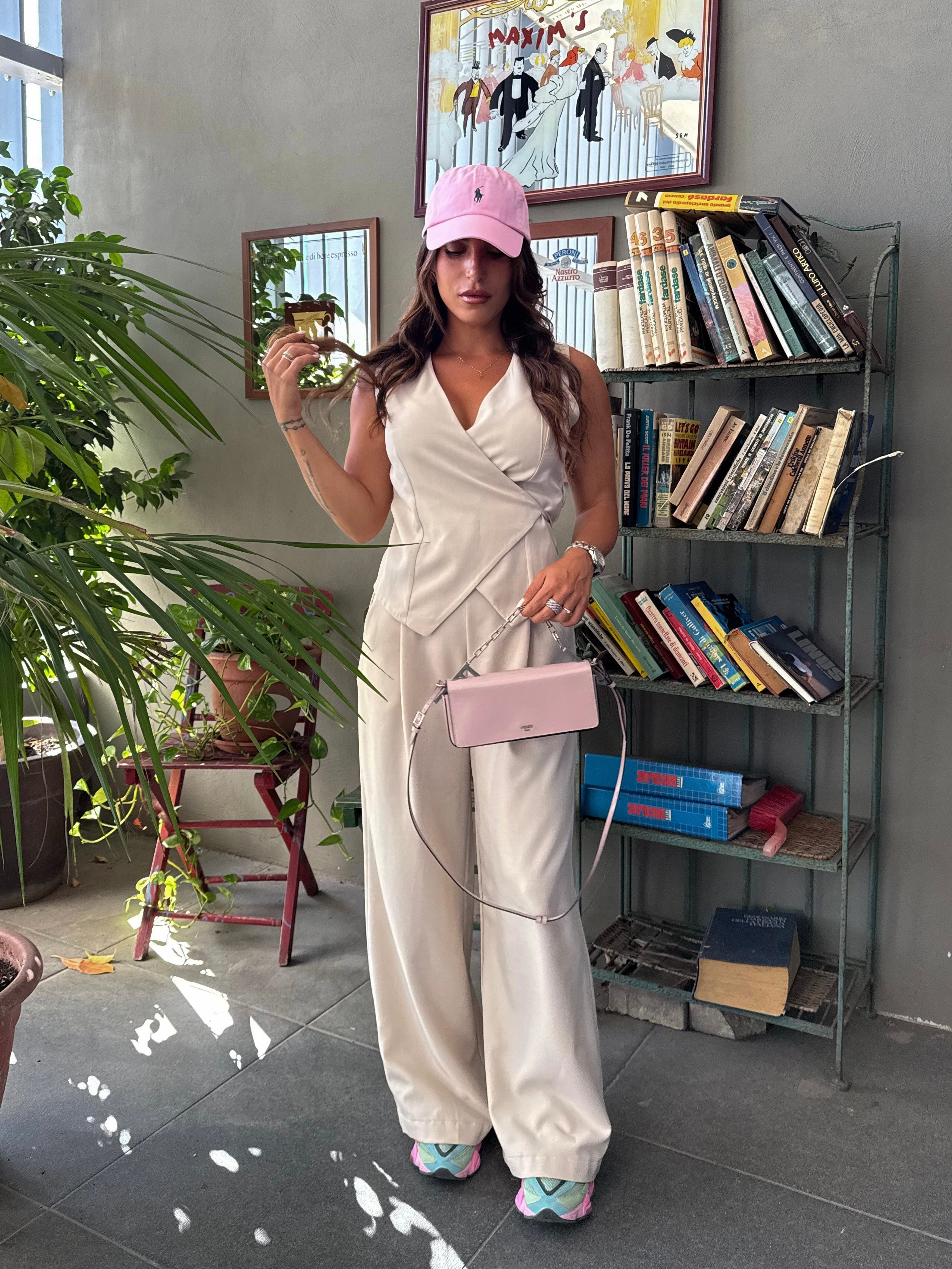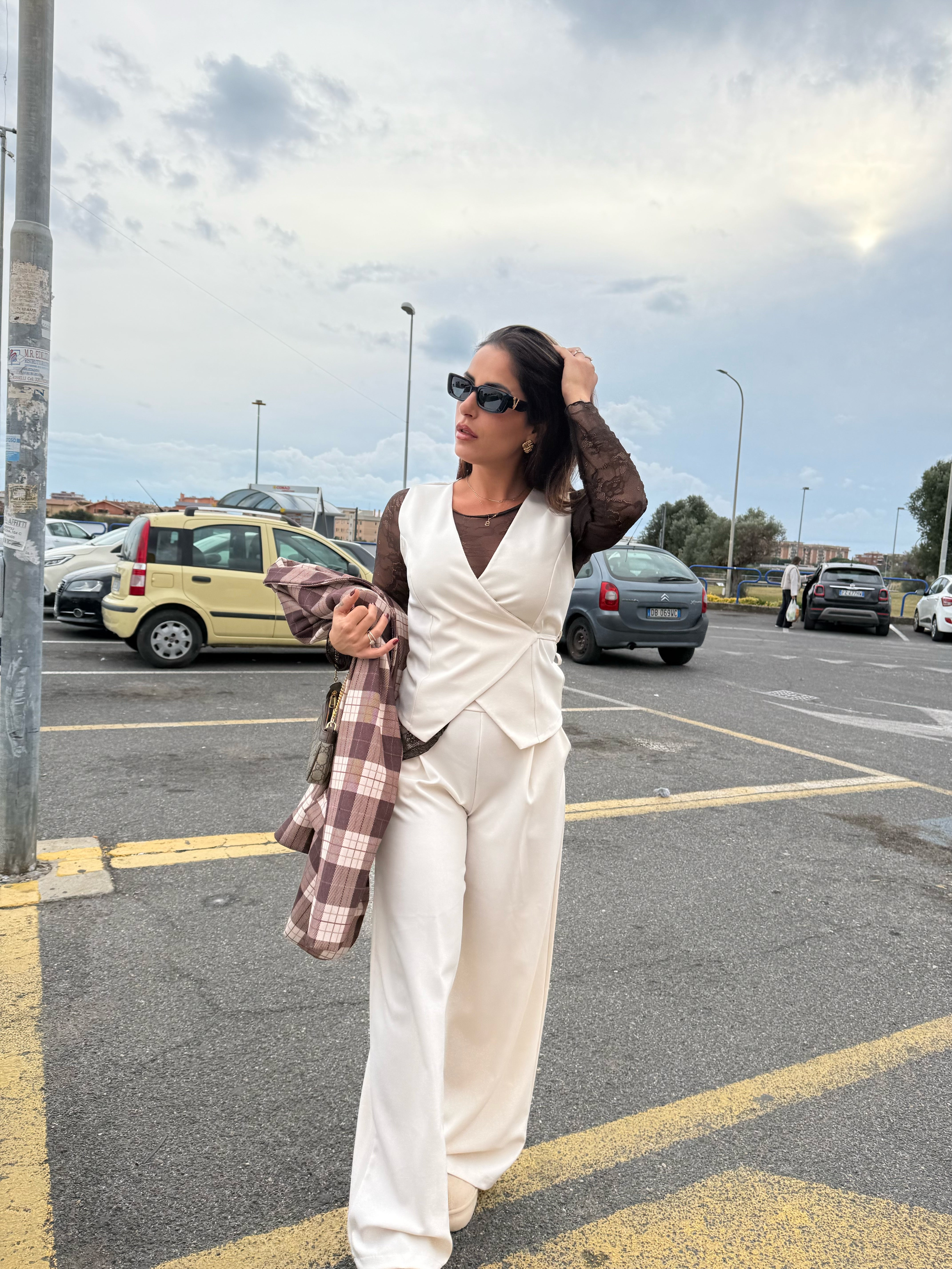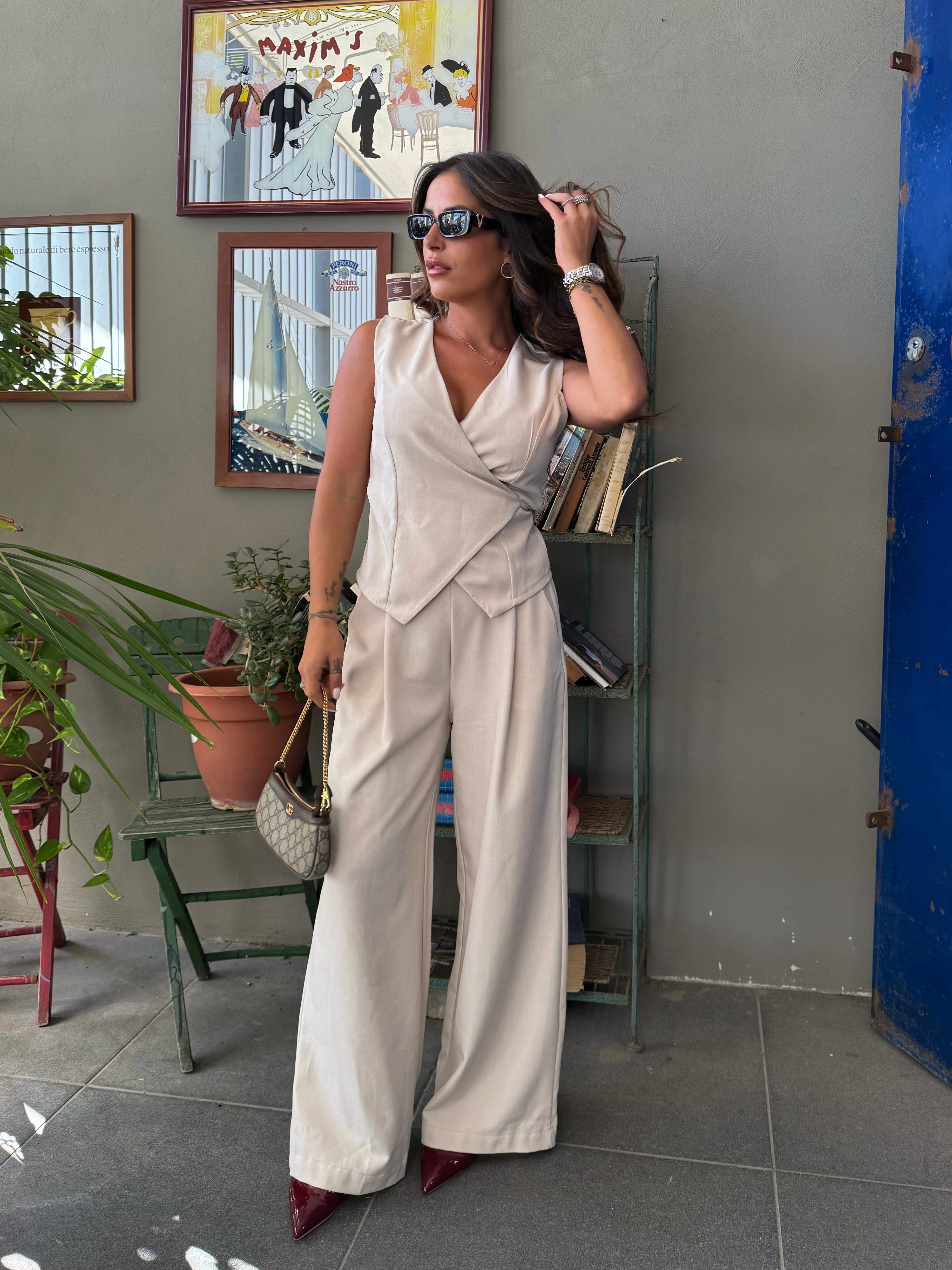 Un coordinato dal tono neutro ,Semplice , raffinato facile da abbinare. . Perfetto da tutti i giorni o da rendere elegante con un tacco .
