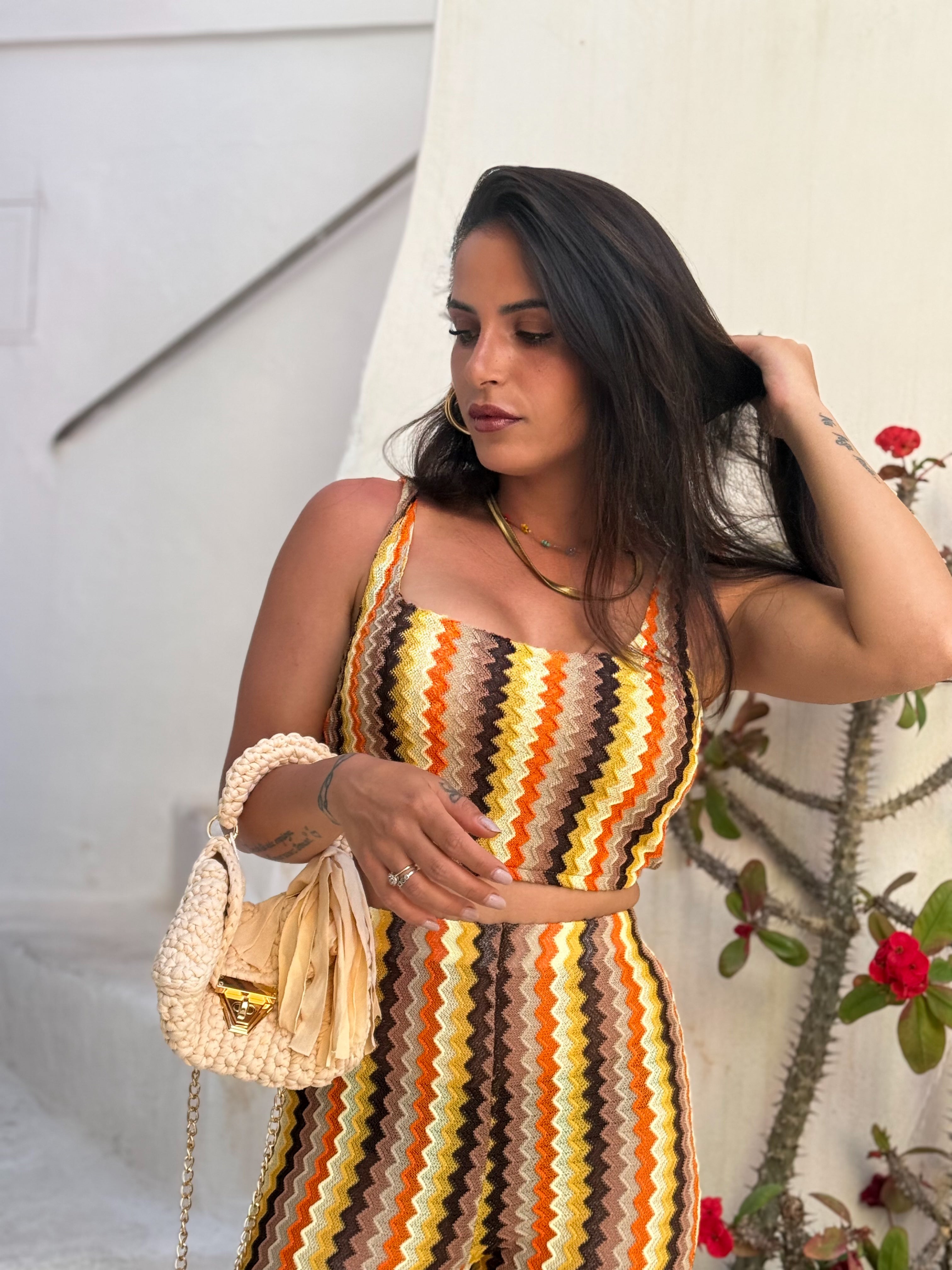 Un completo che sa di estate e di stile . Il top crop e pantalone a zampa creano un mix... Per saperne di più