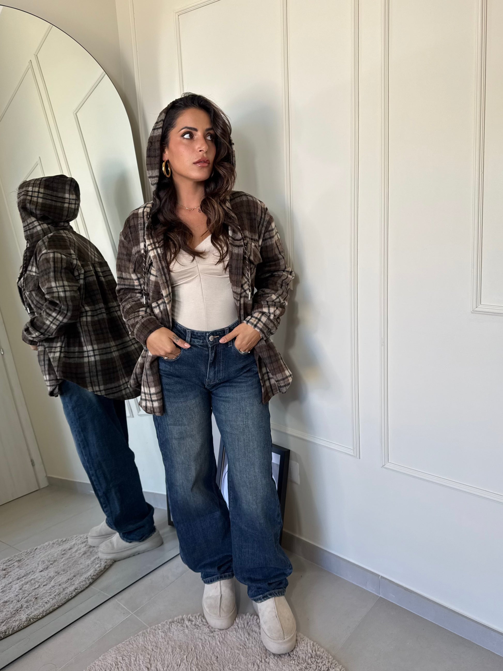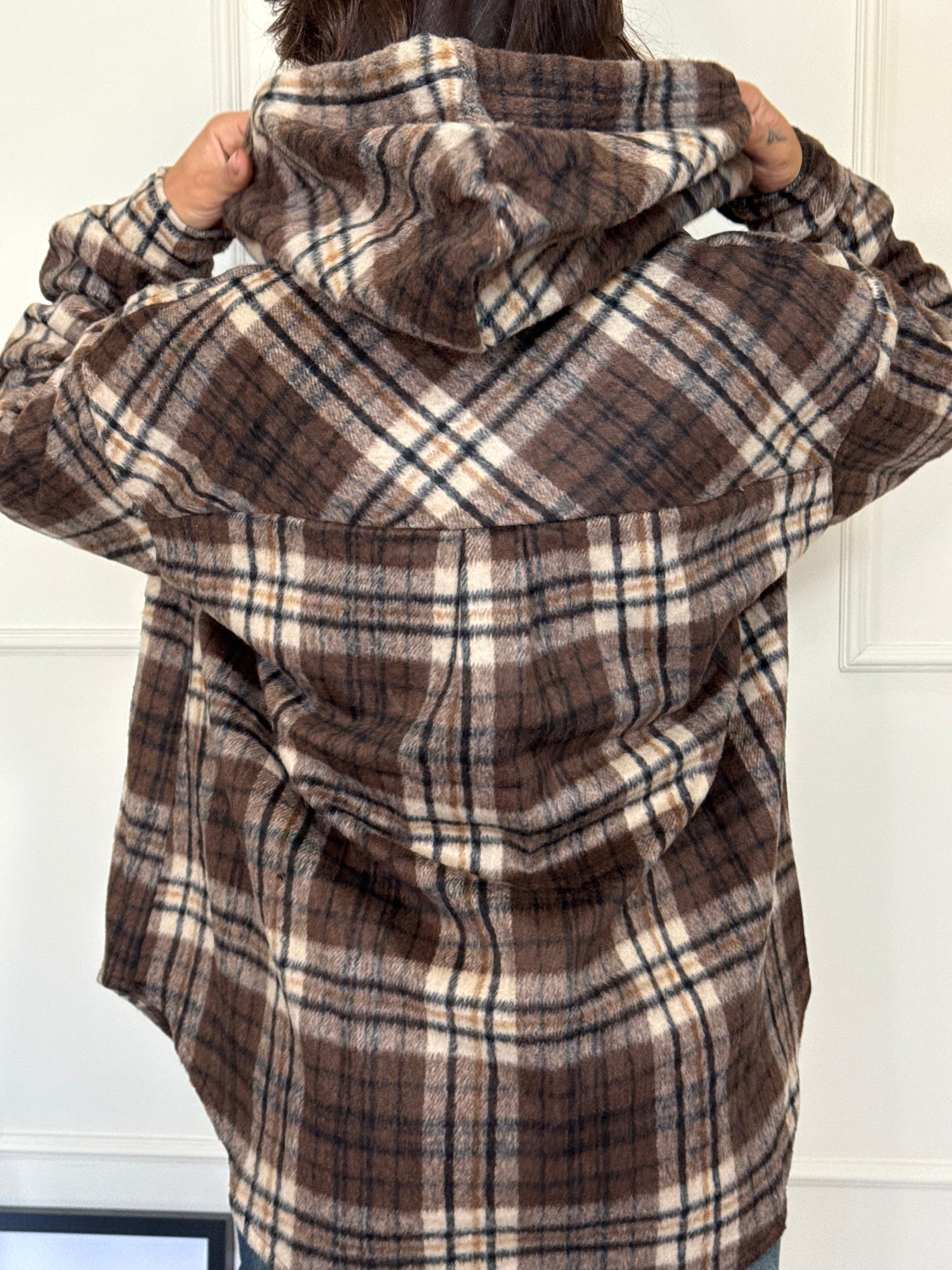 Giacca in panno calda e avvolgente , con fantasia a quadretti nei toni neutri di marrone , beige tortora e nero. Il cappuccio la rende pratica e perfetta da tutti i giorni , presenta chiusura con bottoni a contrasto neri sul davanti e bottoni sui polsini . Morbida e comfy , da indossare anche sopra maglioni o felpe . Taglia unica veste fino una L senza problemi.