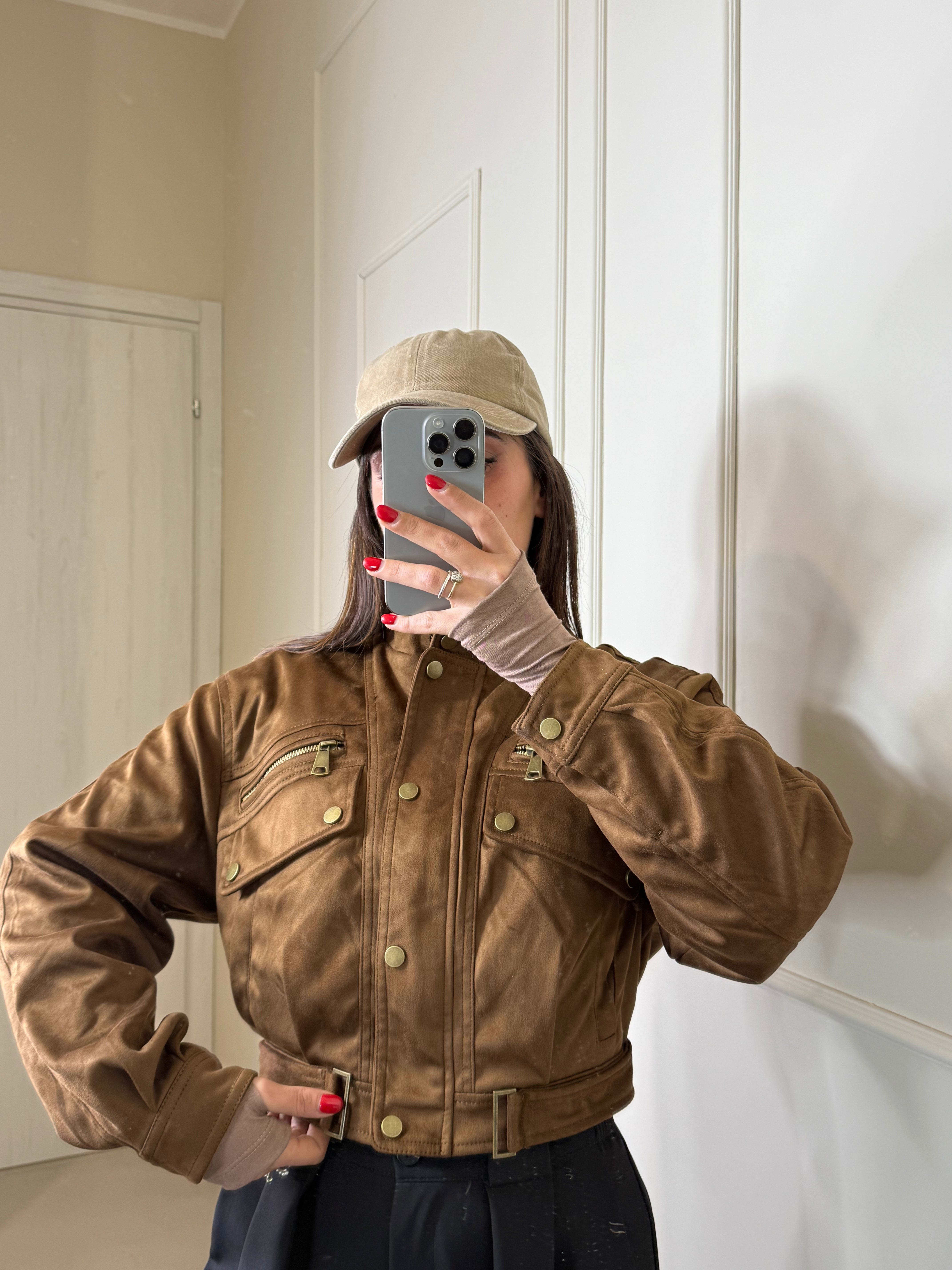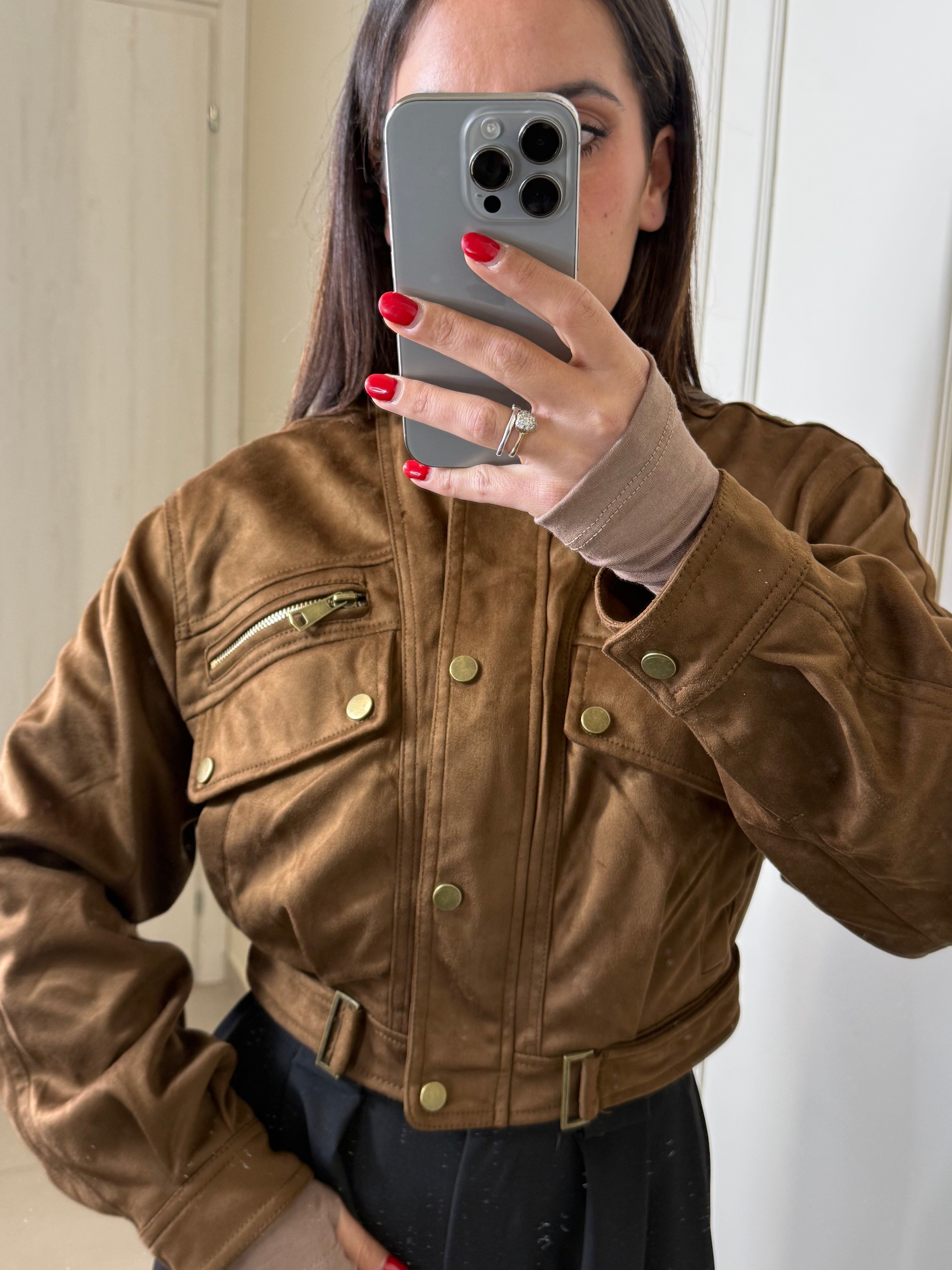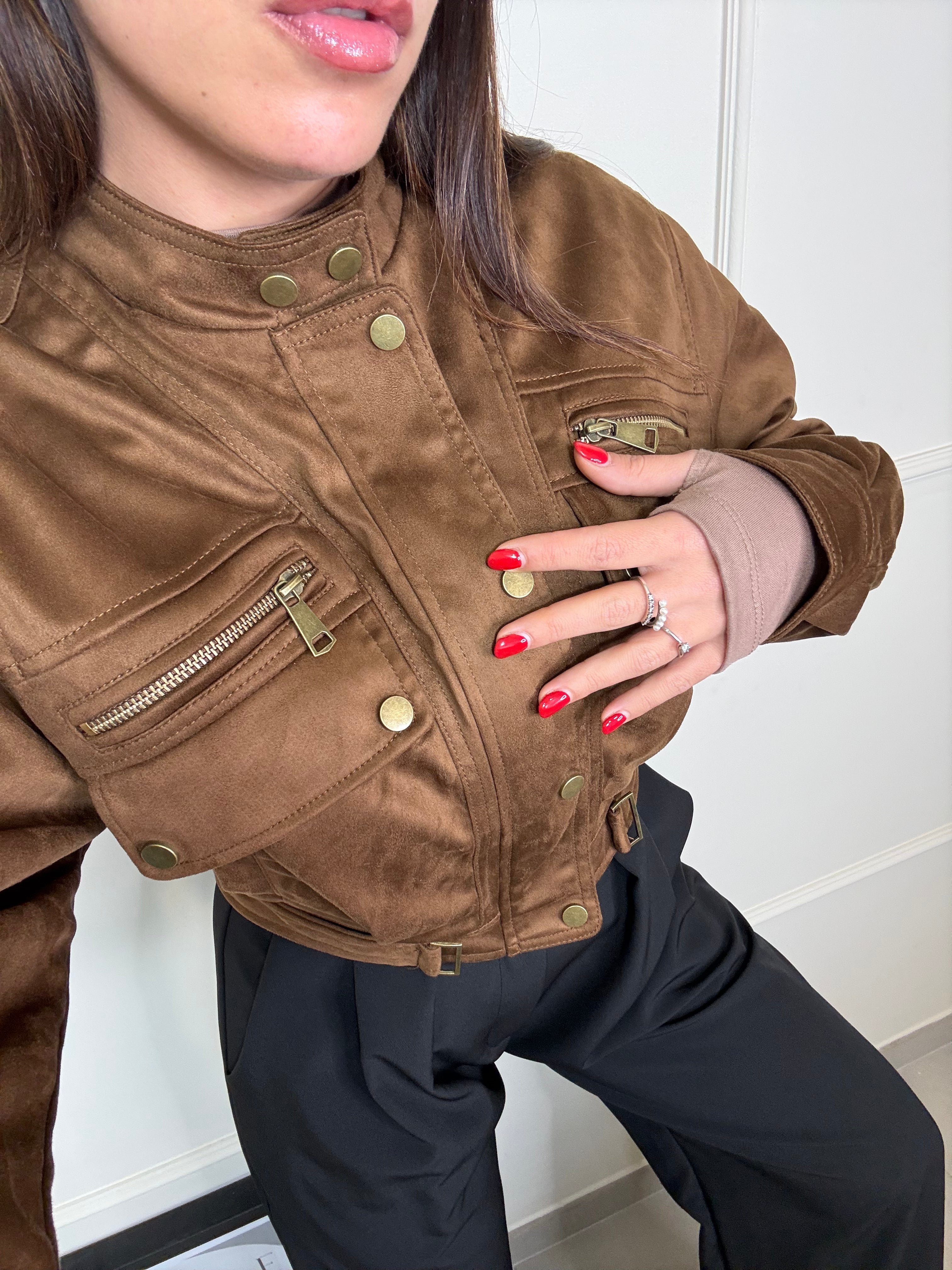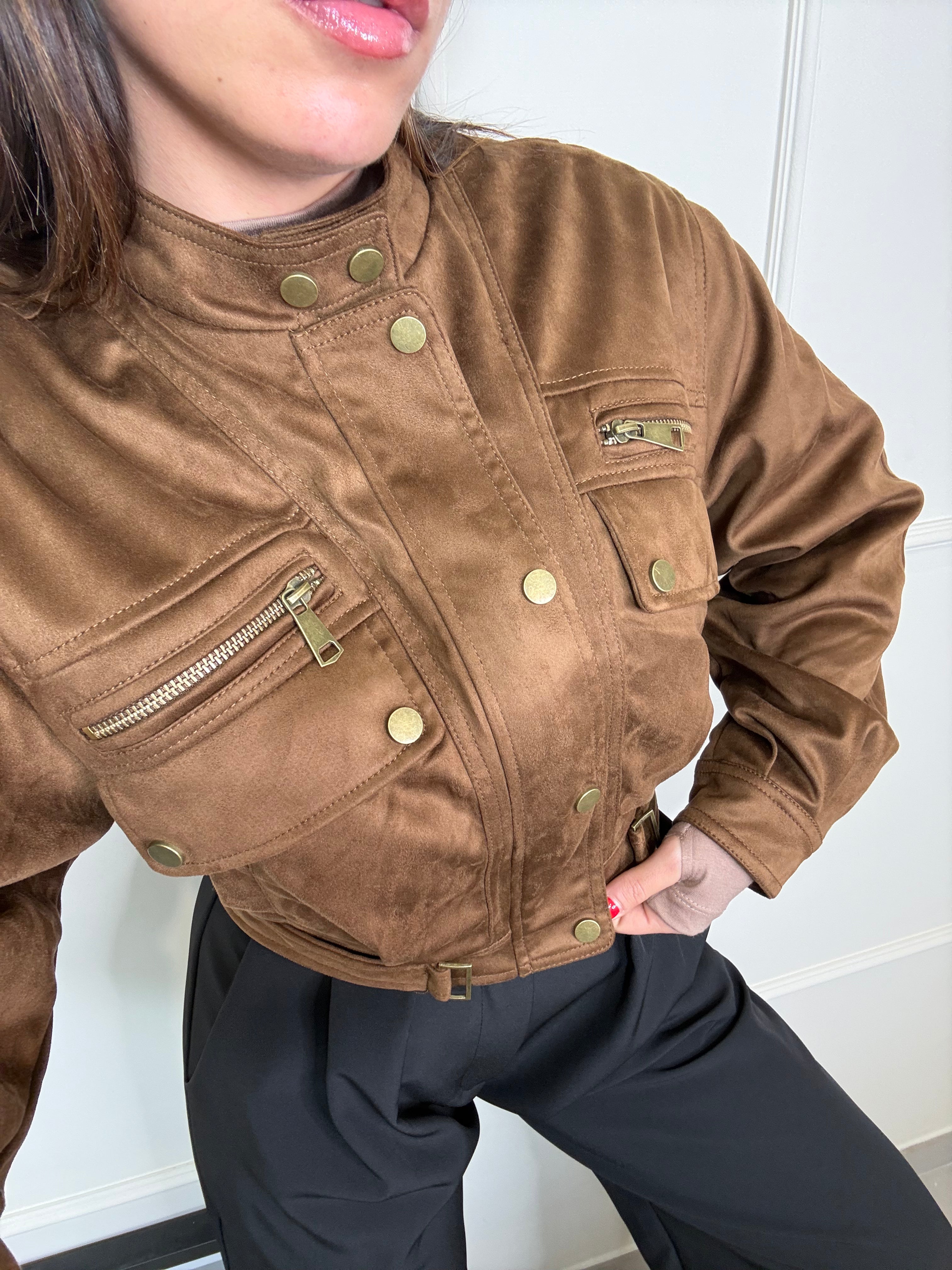 Scopri il nostro giacchetto scamosciato camel ,un capo trendy e pieno di dettagli. chiusura con zip e bottoncini sul davanti, interno foderato e caldo , il colore è vivo e luminoso , ancora più bello dal vivo, perfetto dalla mattina alla sera , sia per look giornalieri che serali. Va a taglie SM ML , Sara in foto indossa SM