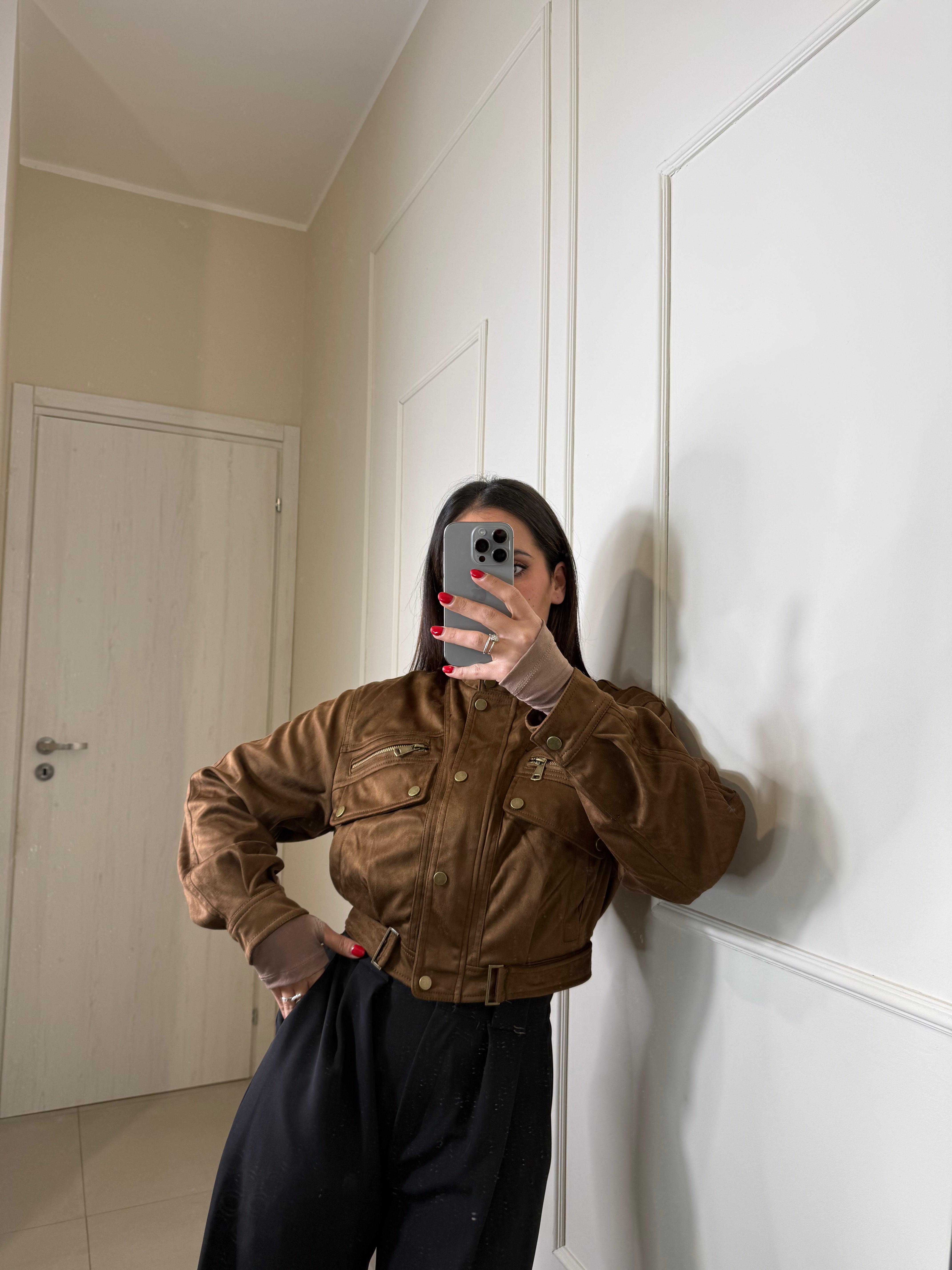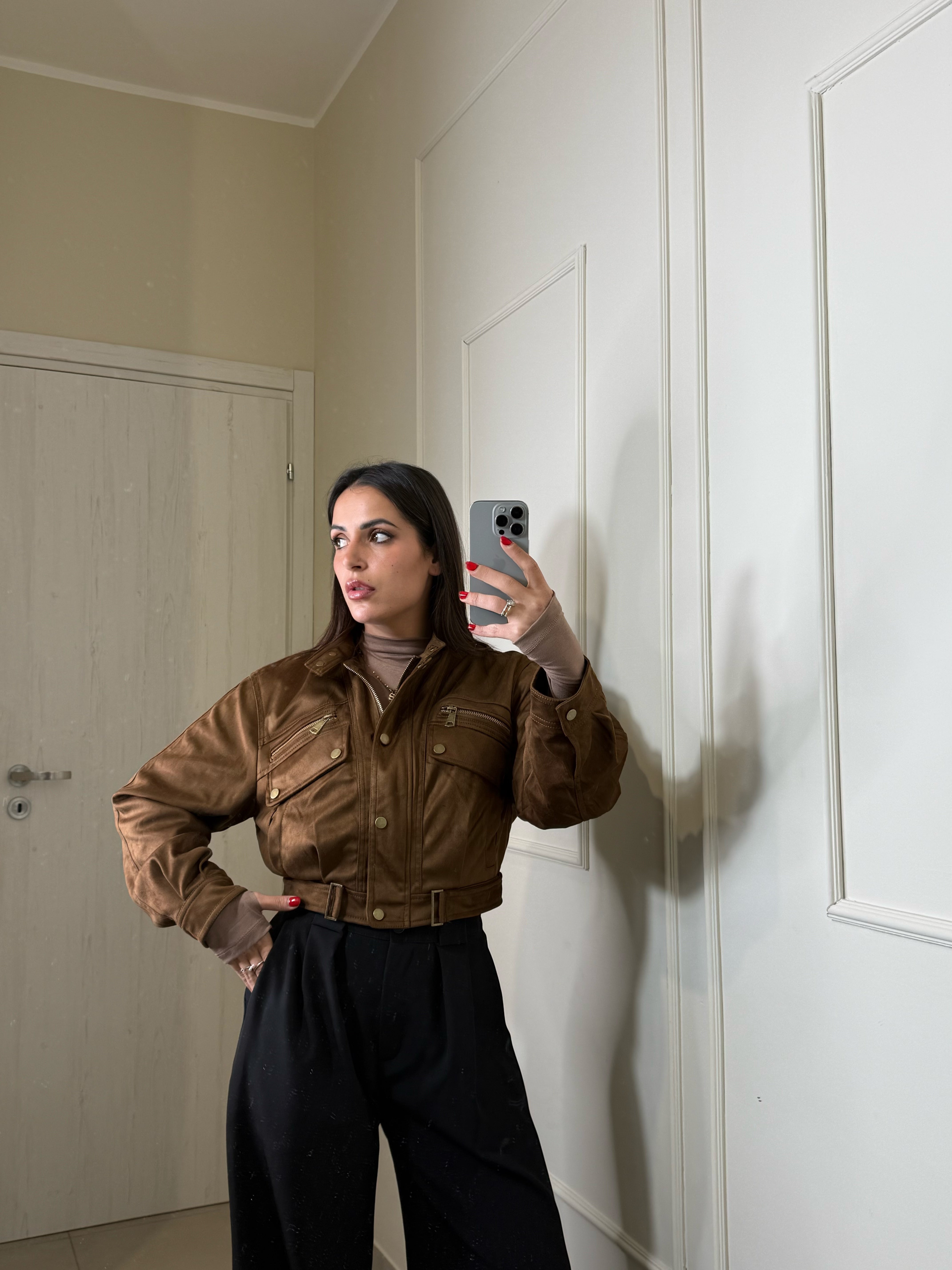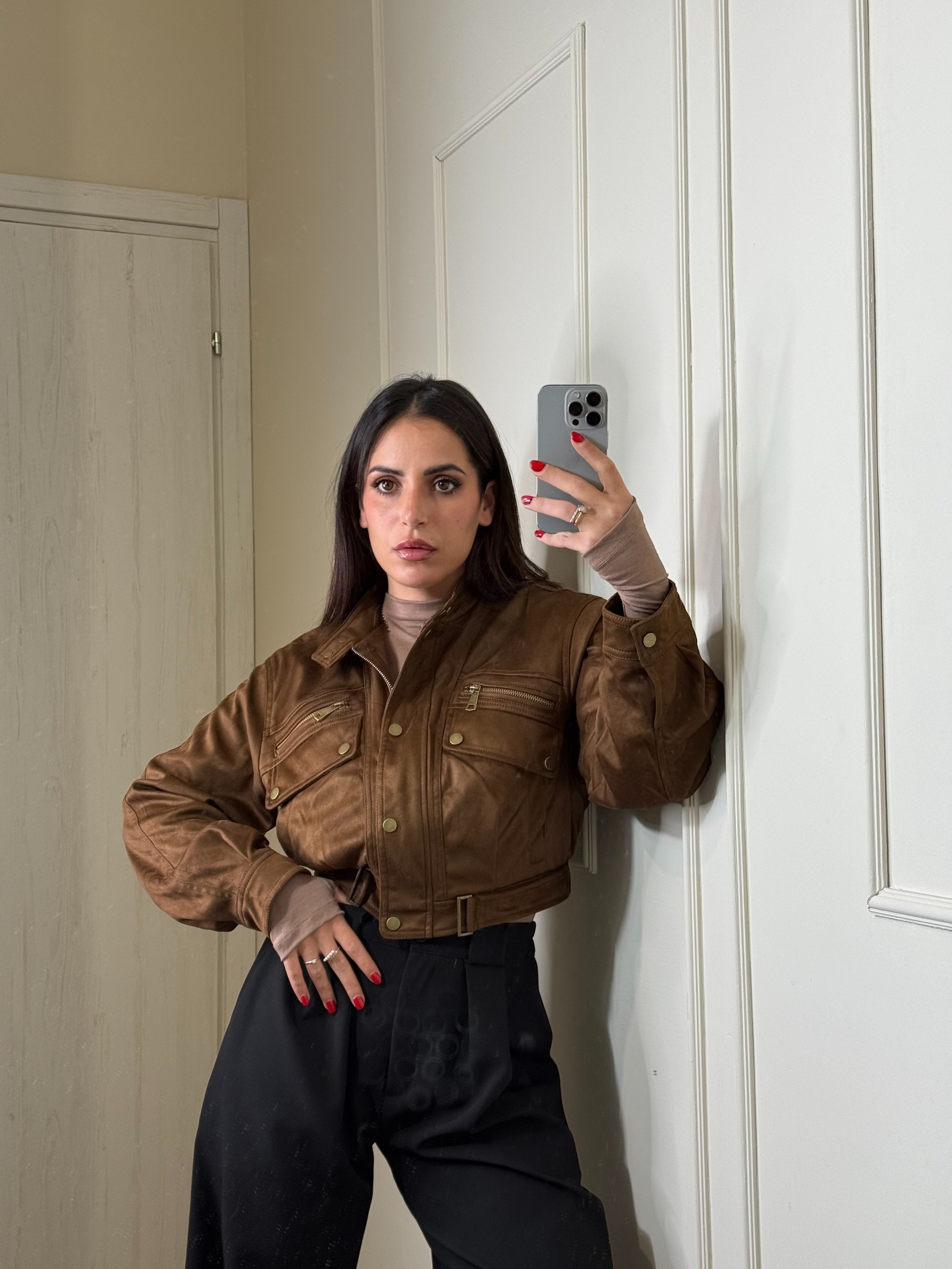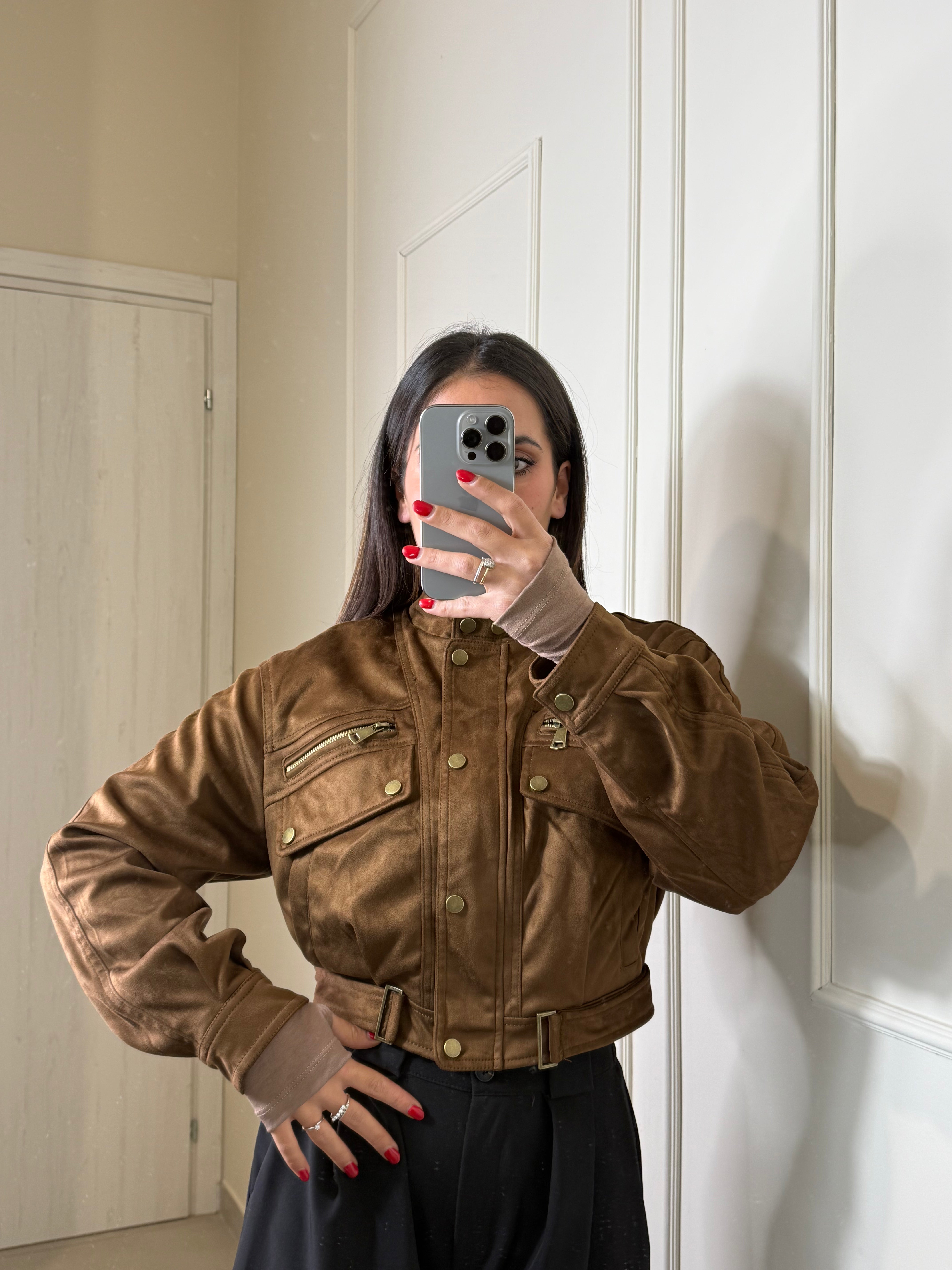 Scopri il nostro giacchetto scamosciato camel ,un capo trendy e pieno di dettagli. chiusura con zip e bottoncini sul davanti, interno foderato e caldo , il colore è vivo e luminoso , ancora più bello dal vivo, perfetto dalla mattina alla sera , sia per look giornalieri che serali. Va a taglie SM ML , Sara in foto indossa SM