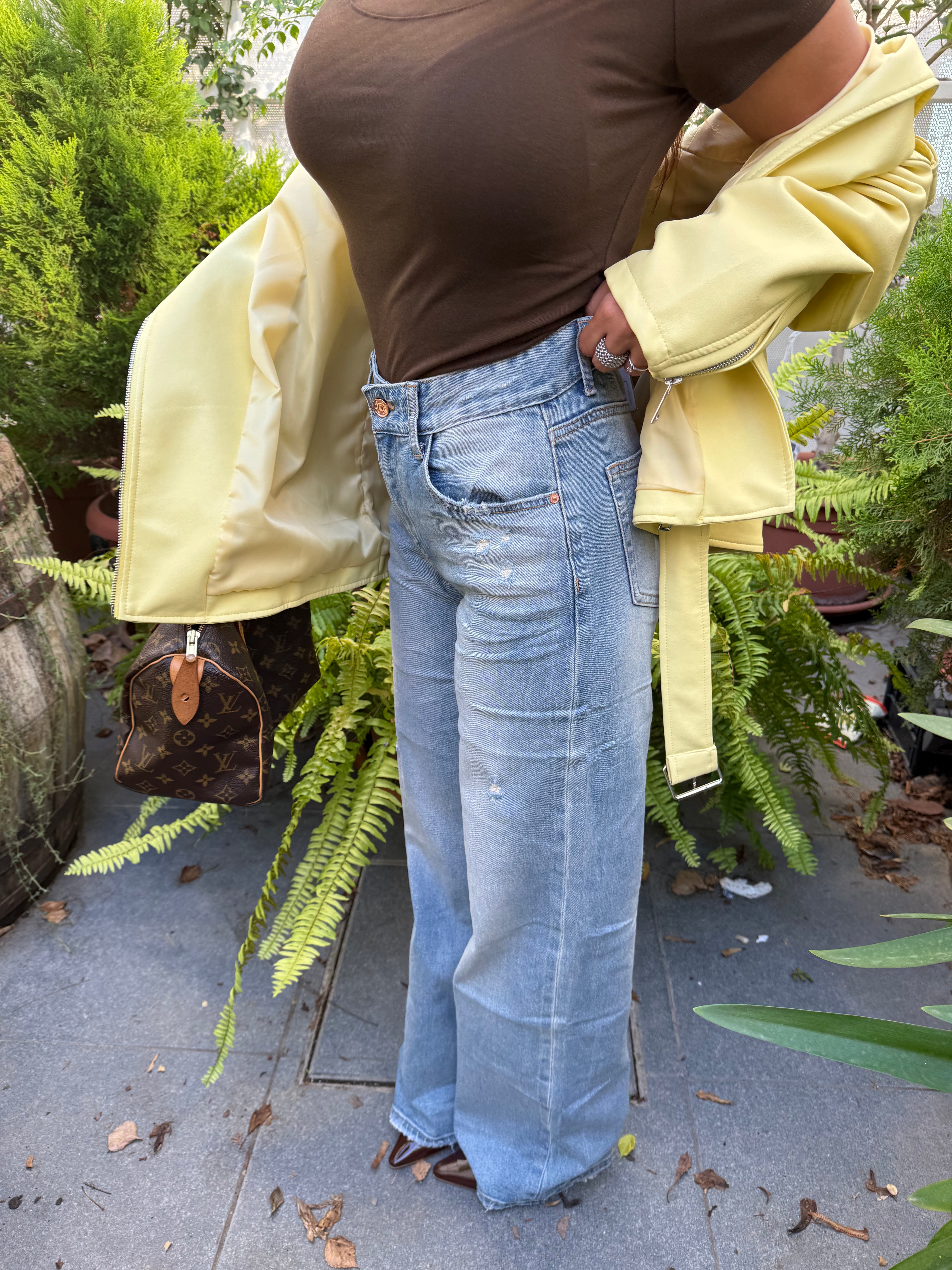 “Jeans wide-leg che slanciano un sacco! Tessuto morbido e vita che non stringe.”