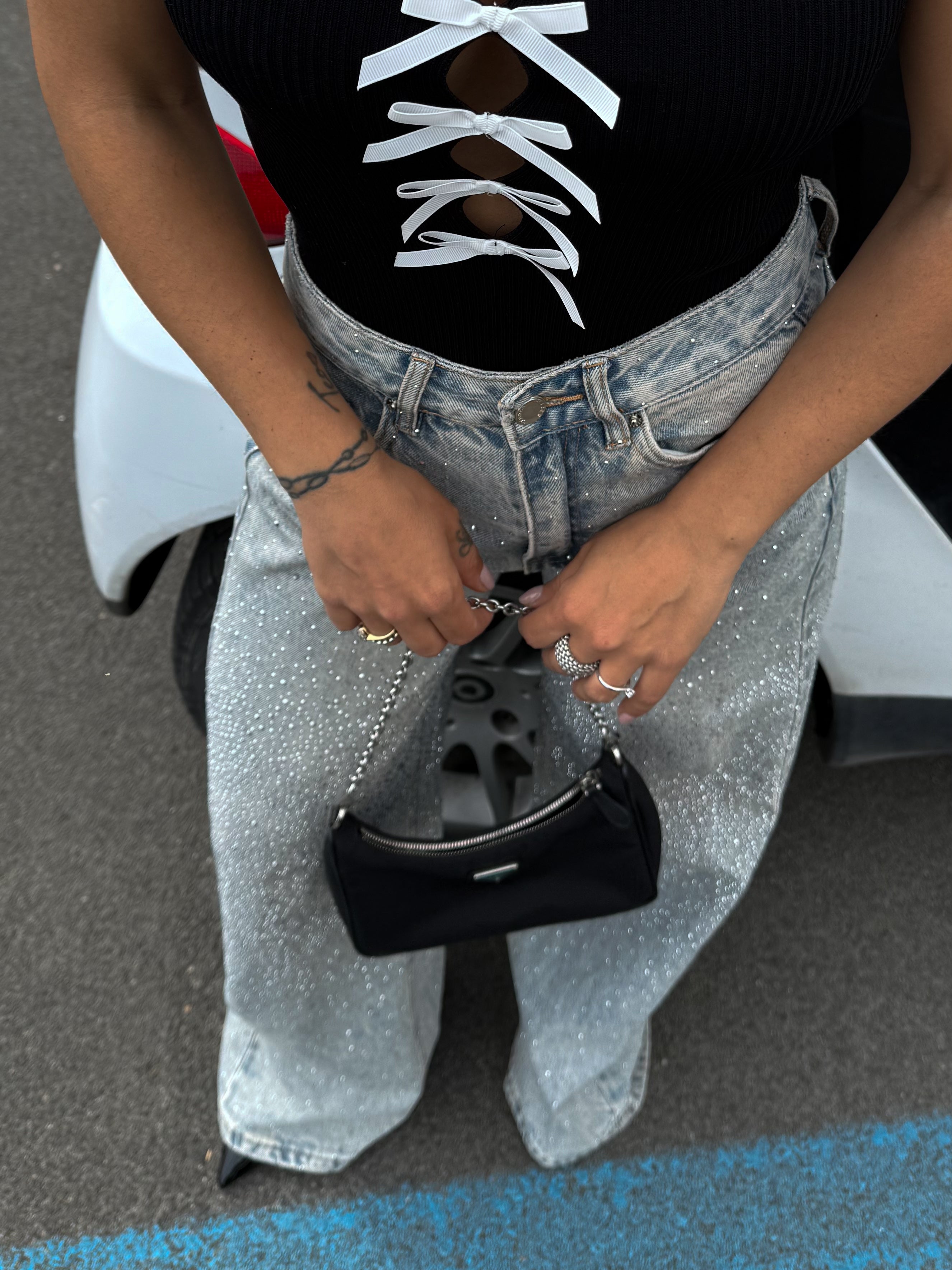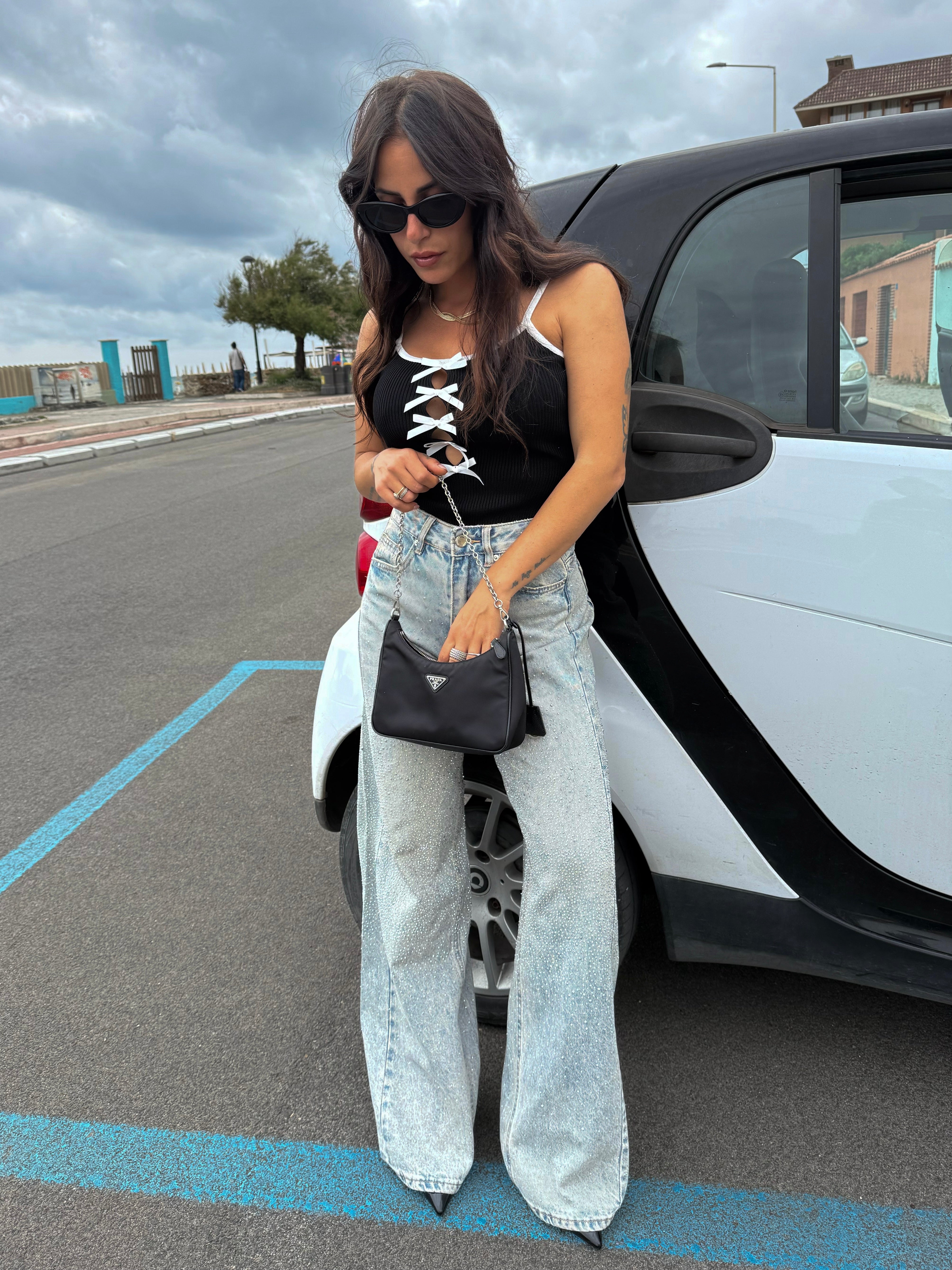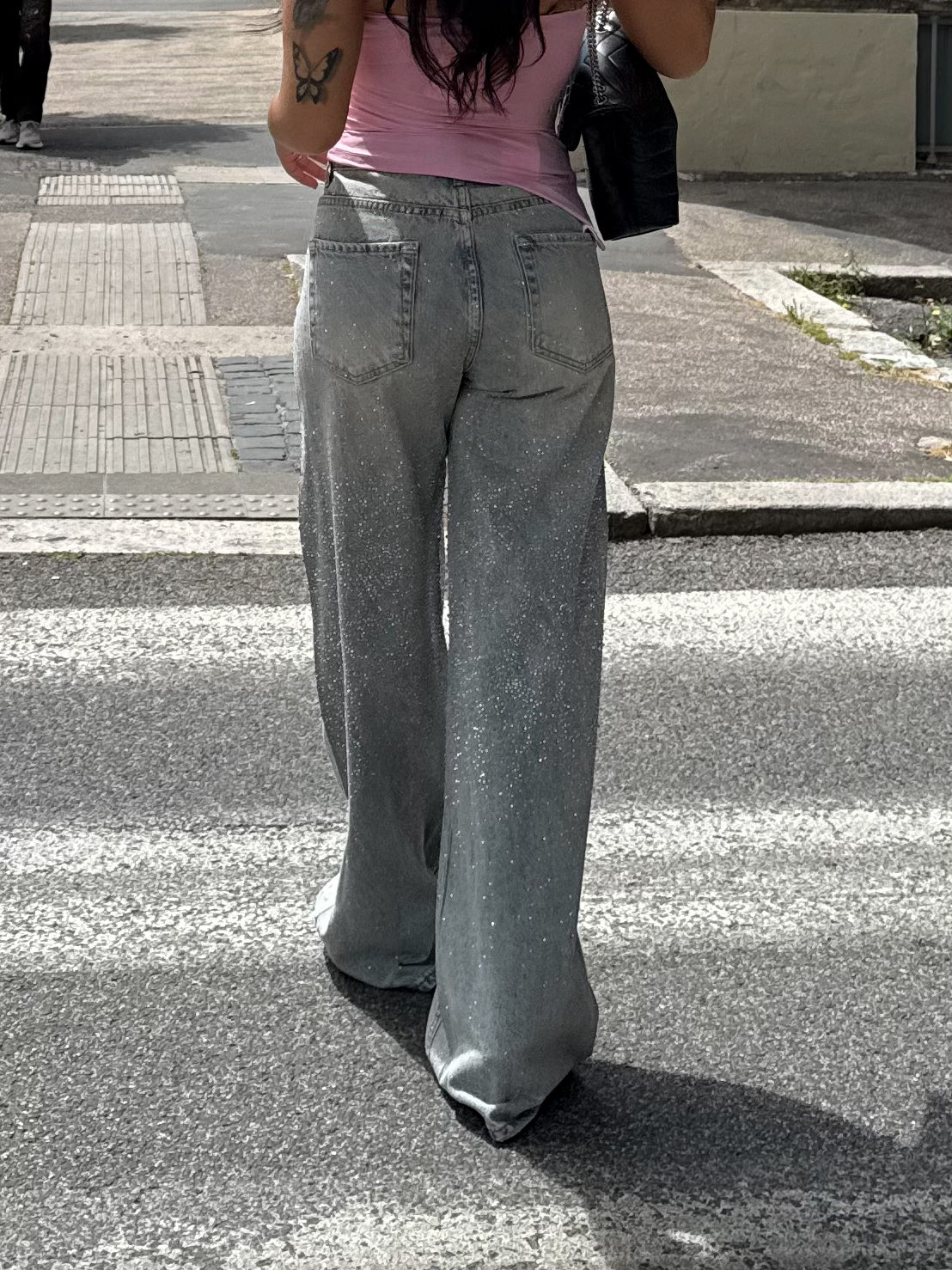 Preparati a catturare ogni guardo con i nostri Jeans Diva . Lavaggio chiaro e fit morbido e ampio , Ma la vera magia è nei dettagli , ogni centimetro di questi jeasn è ricoperto da scintillanti cristalli effetto swarovski . La loro top quality è un'esperienza che sentirai addosso. Perfetti per elevare qualsiasi outfit .