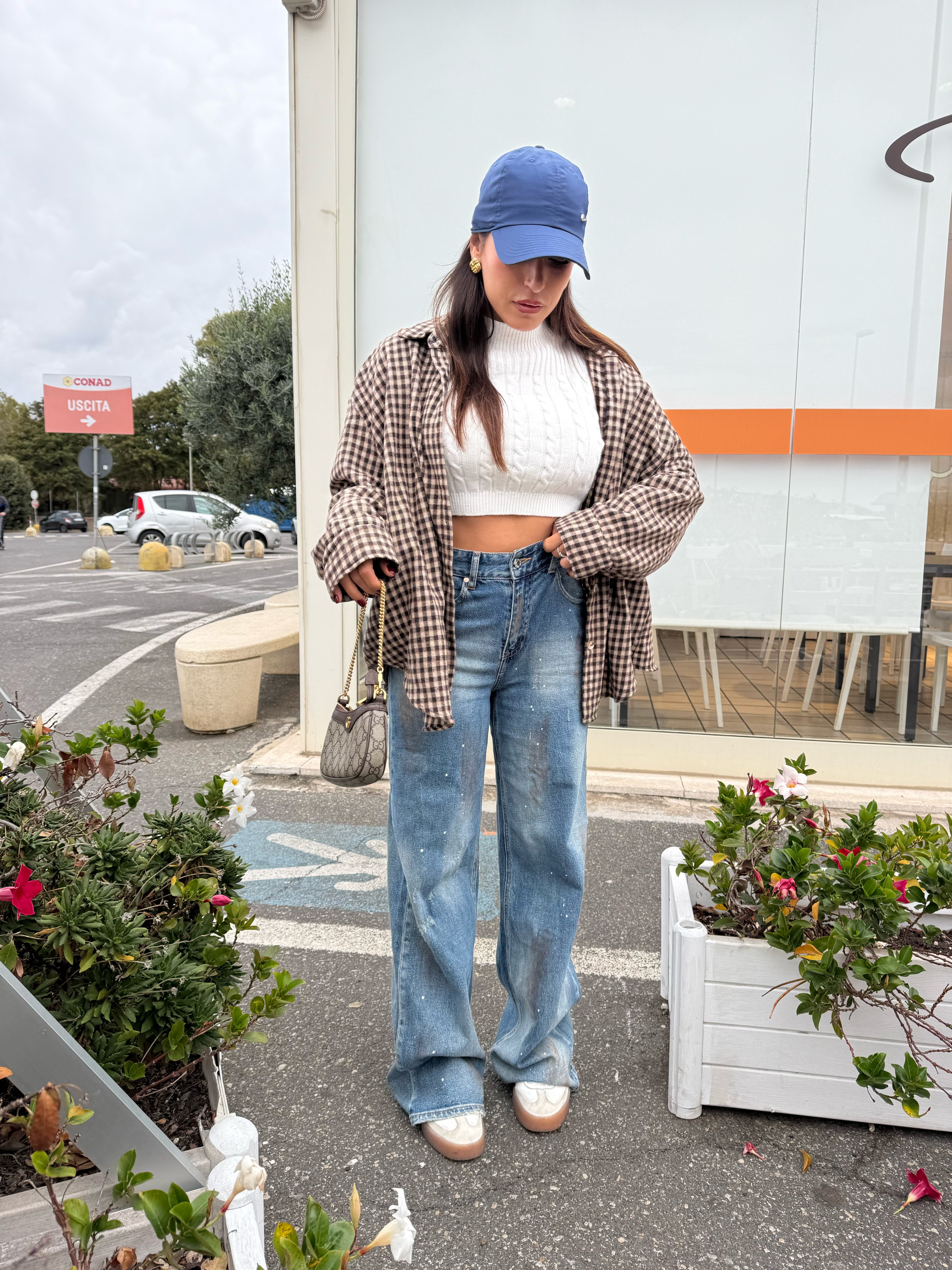 Un jeans che non passa inosservato , ma che si abbina davvero con tutto . Il taglio gamba dritta morbido , slancia la figura . Il tessuto è elasticizzato e comodo, I dettagli fanno la differenza , schizzi di vernice bianca e venature marroni che lo rendono unico . Ha una vestibilità regolare . Disponibile dalla XS a XL