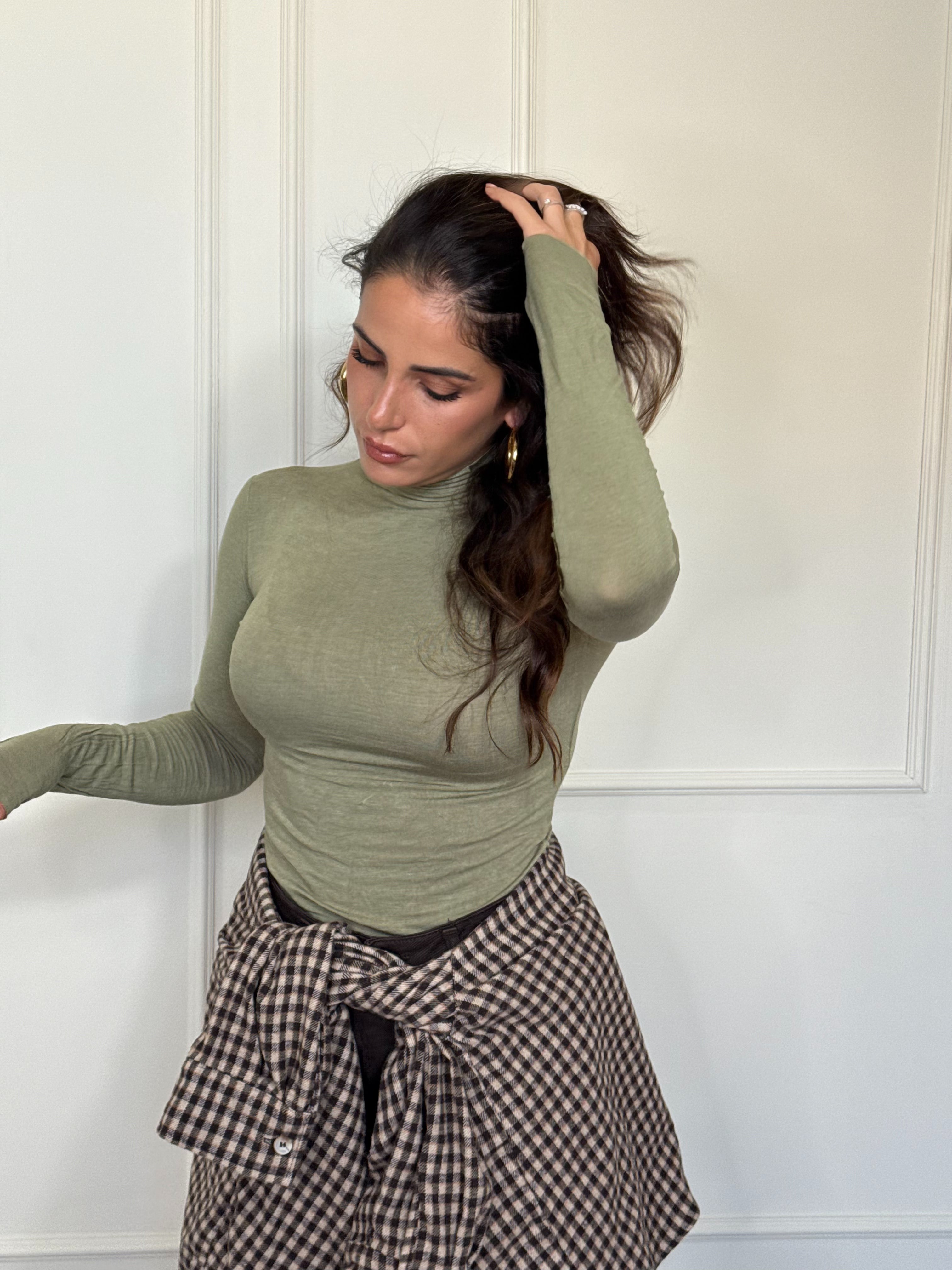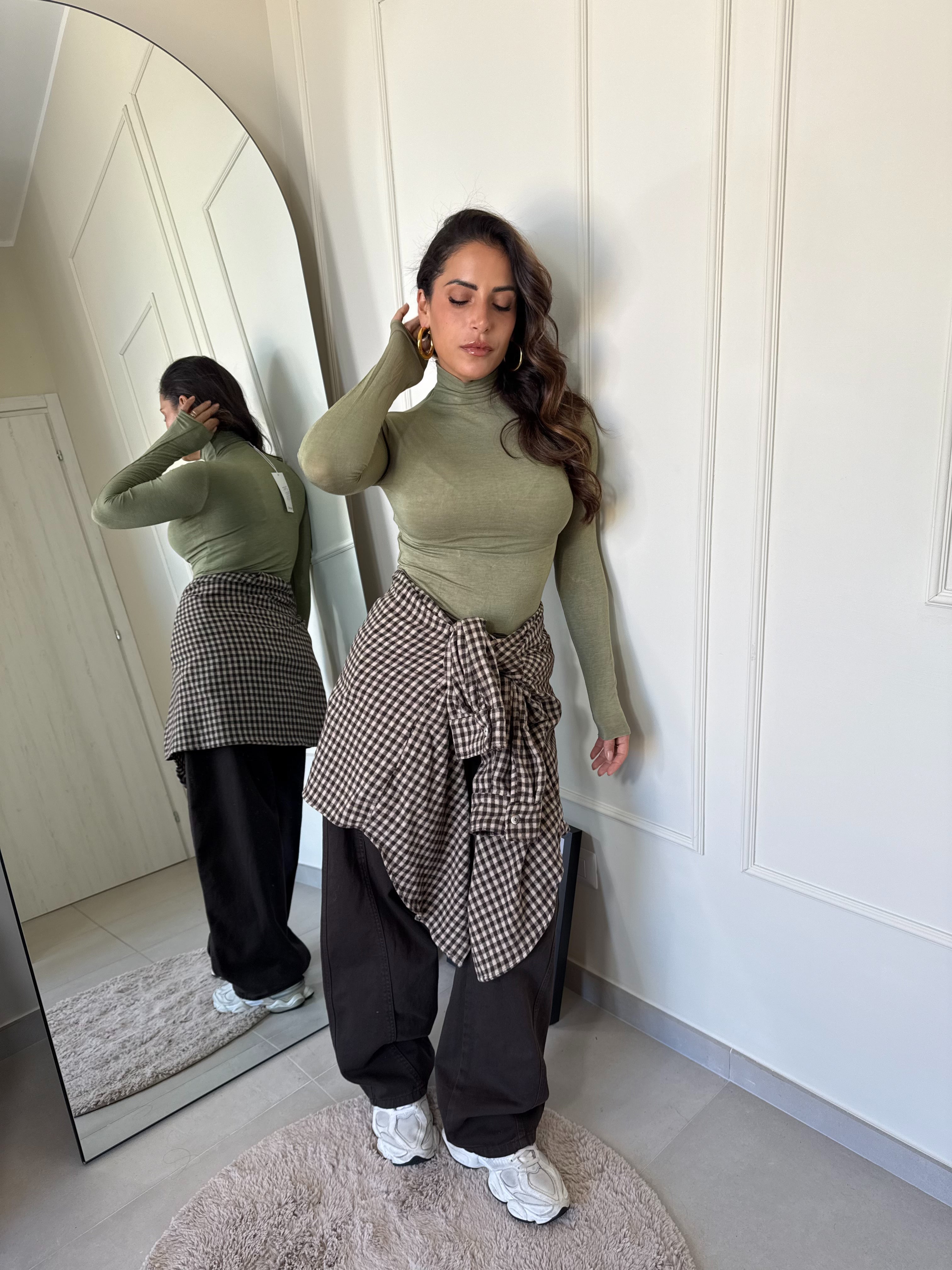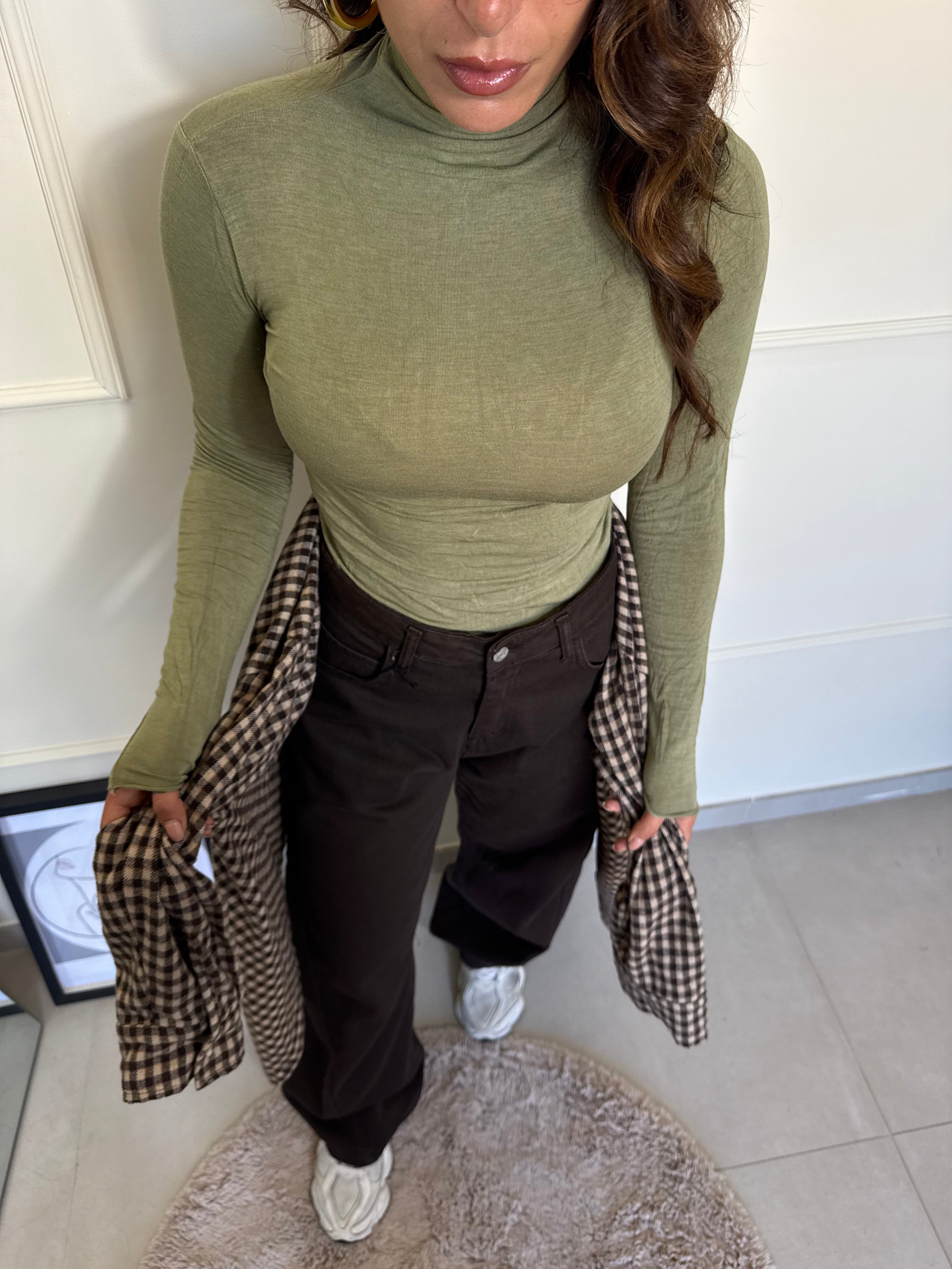 Il capo base che non può mancare nel tuo armadio. in verde oliva colore del momento , in 70% viscosa , caldo morbido e leggermente trasparente . Taglia unica veste fino una L