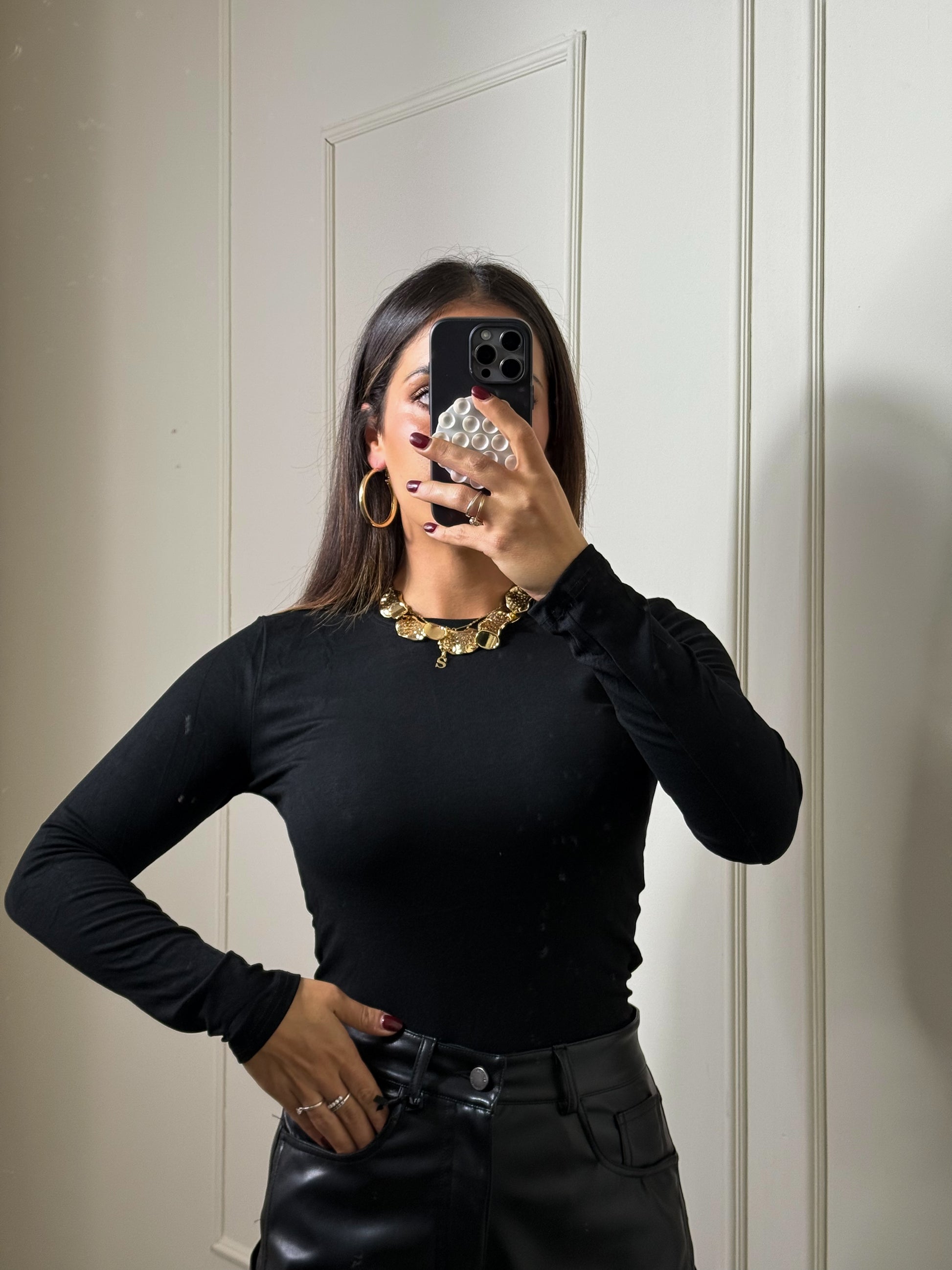 La maglia basic in viscosa che non può mancare nel tuo armadio. In 70% viscosa. da utilizzare da sola, come sotto giacca , sotto felpe e maglioni. Taglia unica veste da XS a L