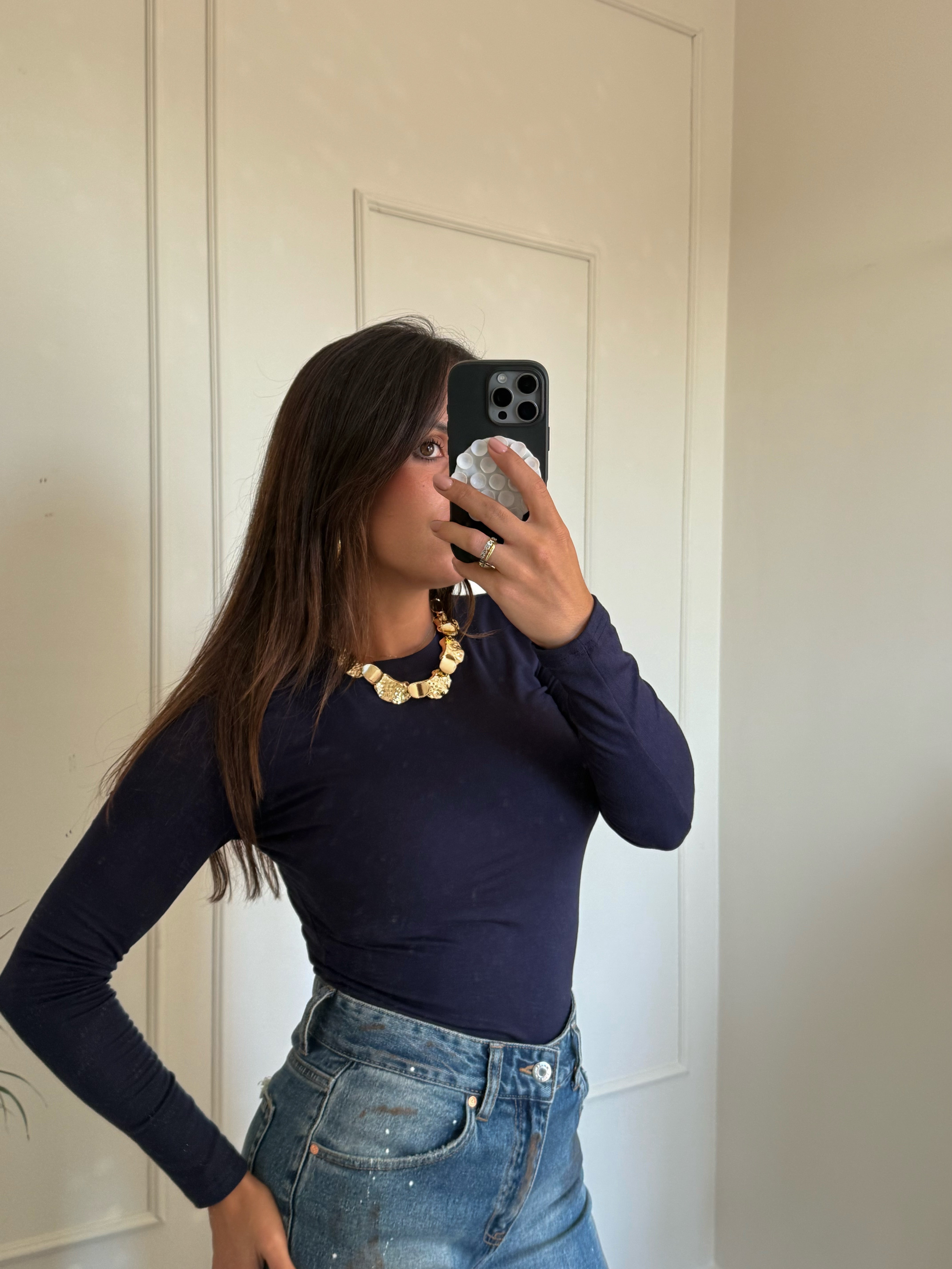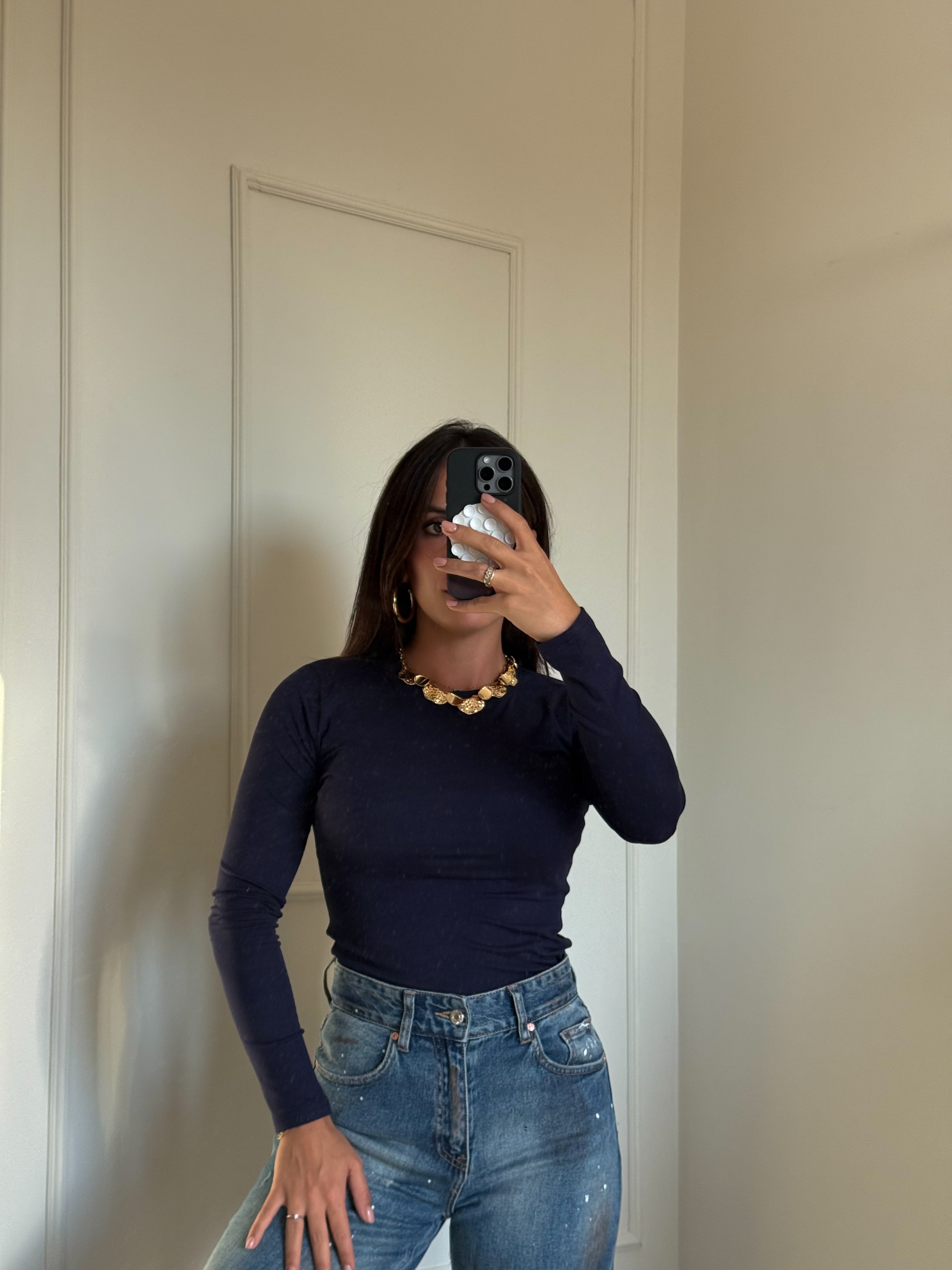 Non è il solito basico . Girocollo, in viscosa e in quel blu notte che si abbina a tutto. Un capo da tenere a portata di mano sempre. Taglia unica veste fino una L