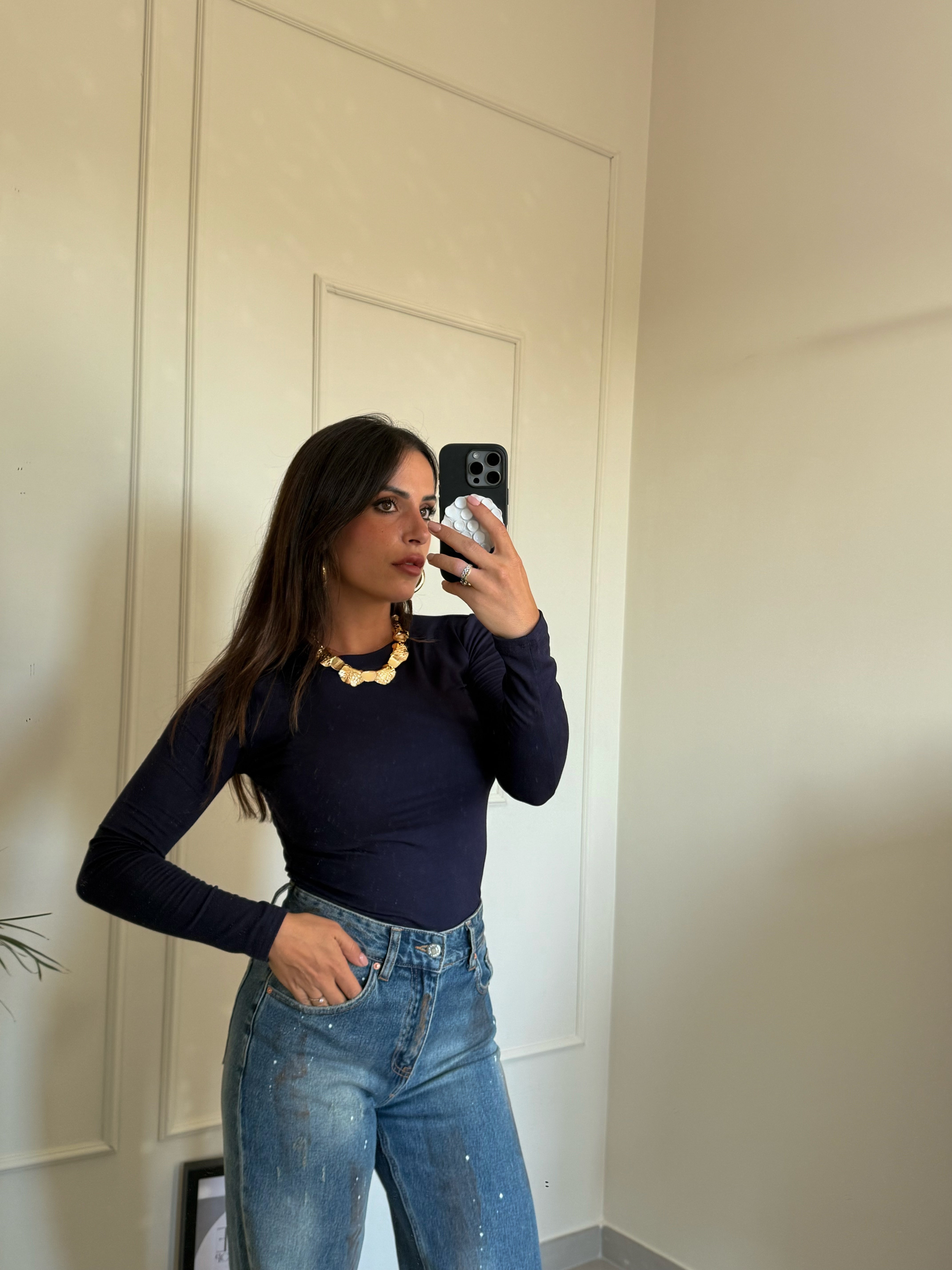 “Jeans wide-leg che slanciano un sacco! Tessuto morbido e vita che non stringe.”