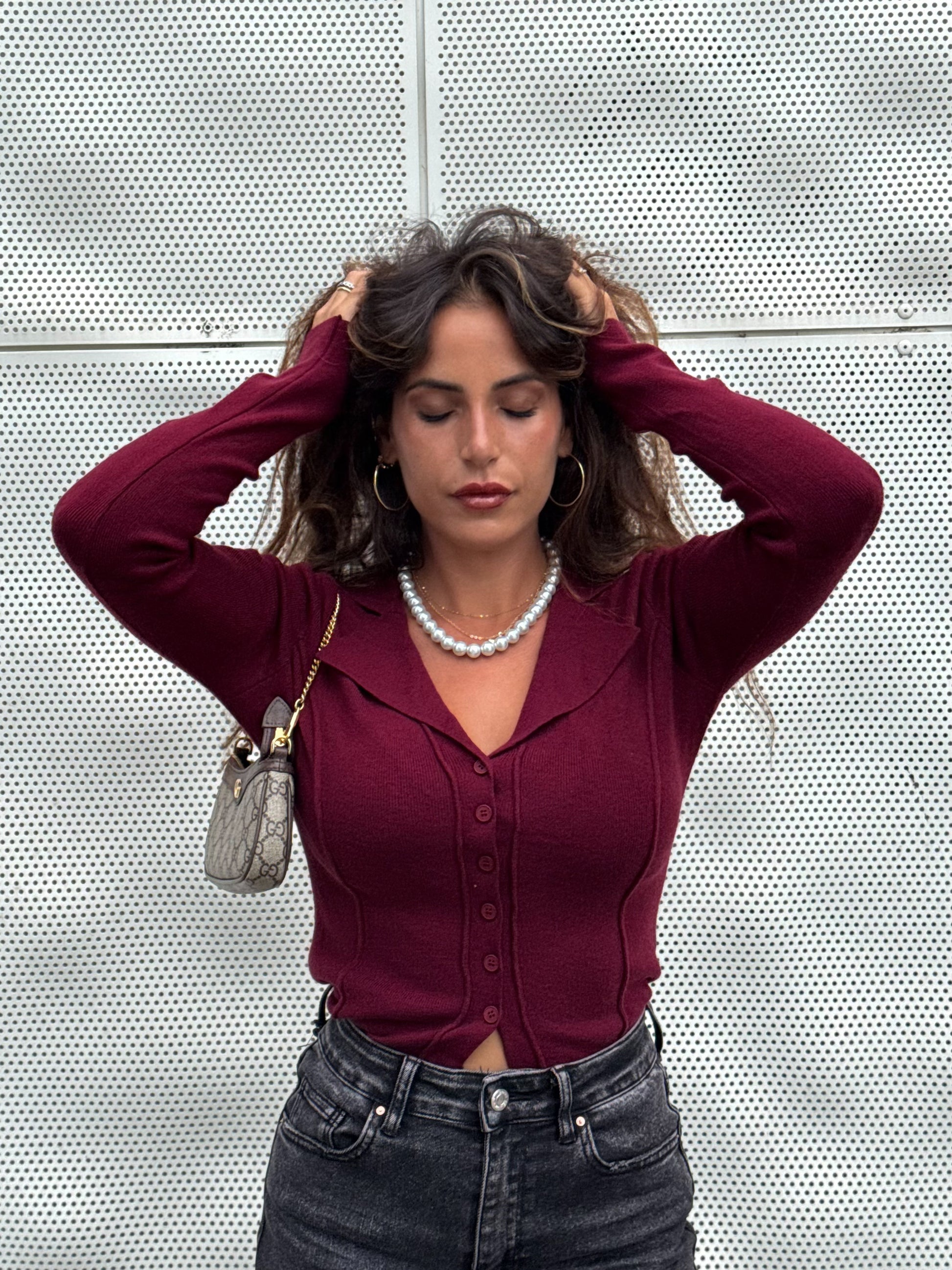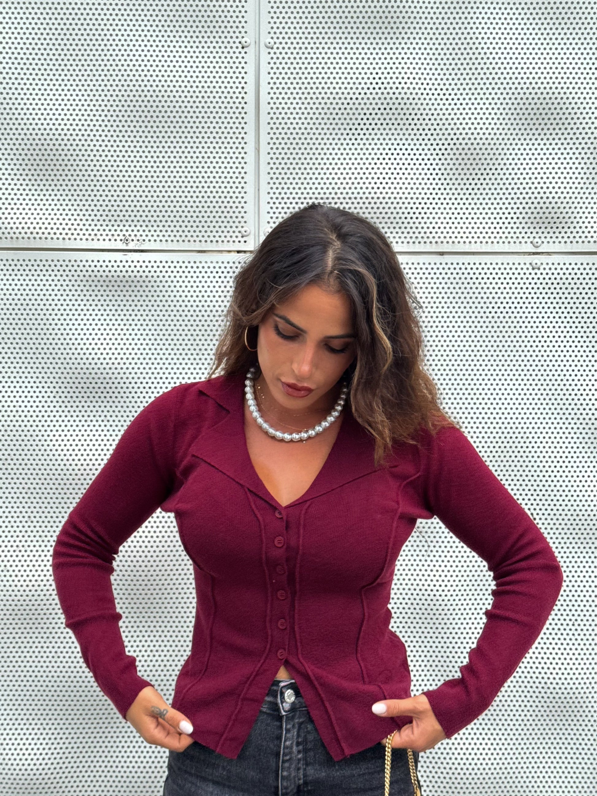 Il maglioncino che non vorrai più togliere . Morbidissimo al tatto , avvolgente e con ottima vestibilità. Lo scollo a V e il colletto stile blazer lo rendono super cool. Chiusura con bottoncini frontali