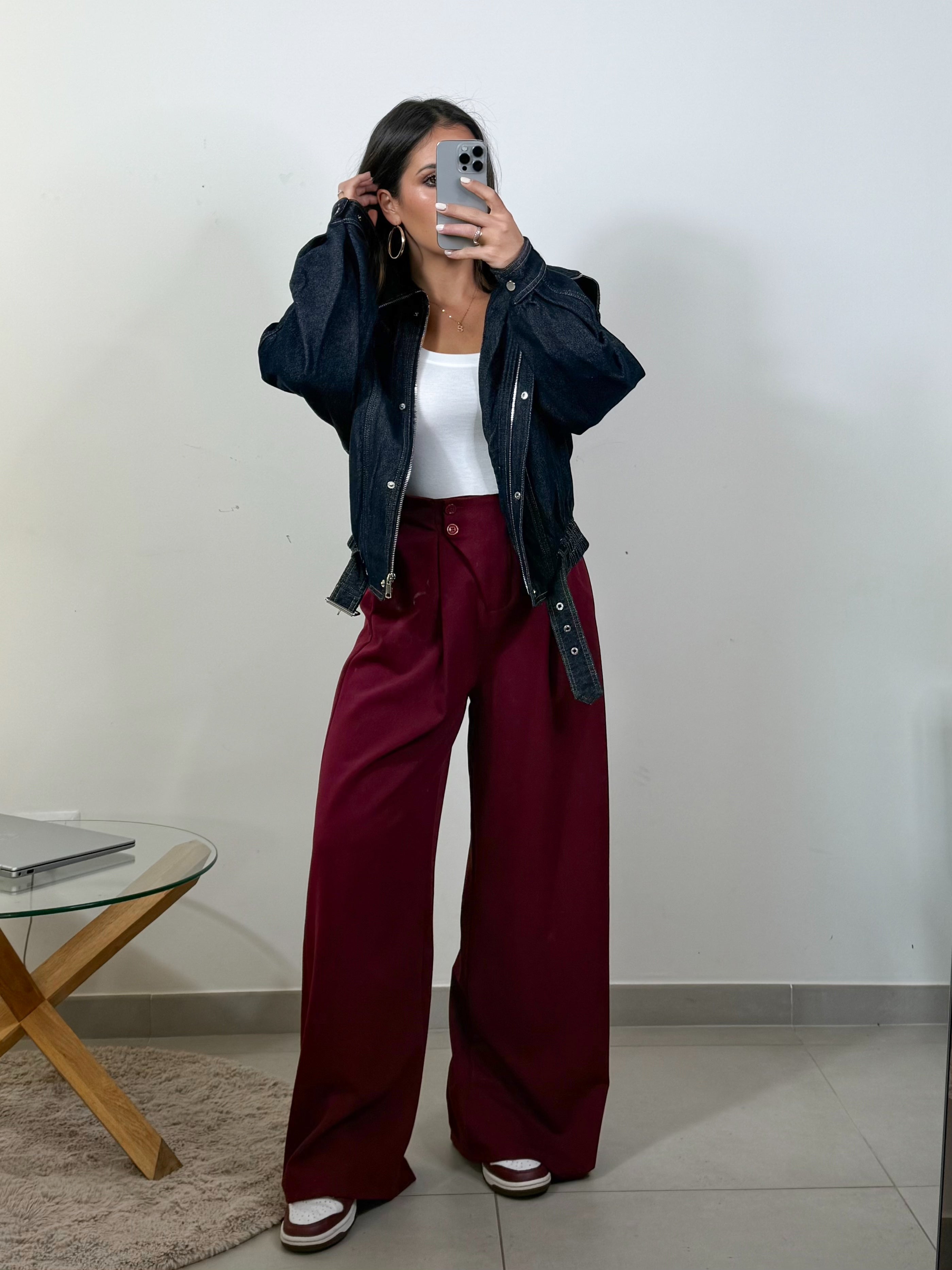 Il pantalone che ti accompagna dalla mattina alla sera . Elastico sul retro e due bottoncini frontali che fanno la differenza . ampio e comodo perfetto con una sneakers per il giorno e tacco per ufficio o passeggiata di sera .
